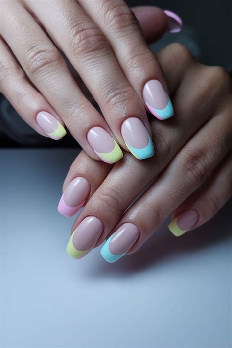 Kalau kamu suka gaya minimalis, coba micro French: garis ujung kuku super tipis dengan warna pastel (mint, baby blue, lilac, atau butter yellow) di atas base nude/transparan. Model ini bikin kuku terlihat panjang dan bersih, plus aman buat kantor. Supaya makin elegan, pakai bentuk almond atau squoval, lalu pilih satu warna untuk semua kuku atau beda tipis per jari (skittle halus).